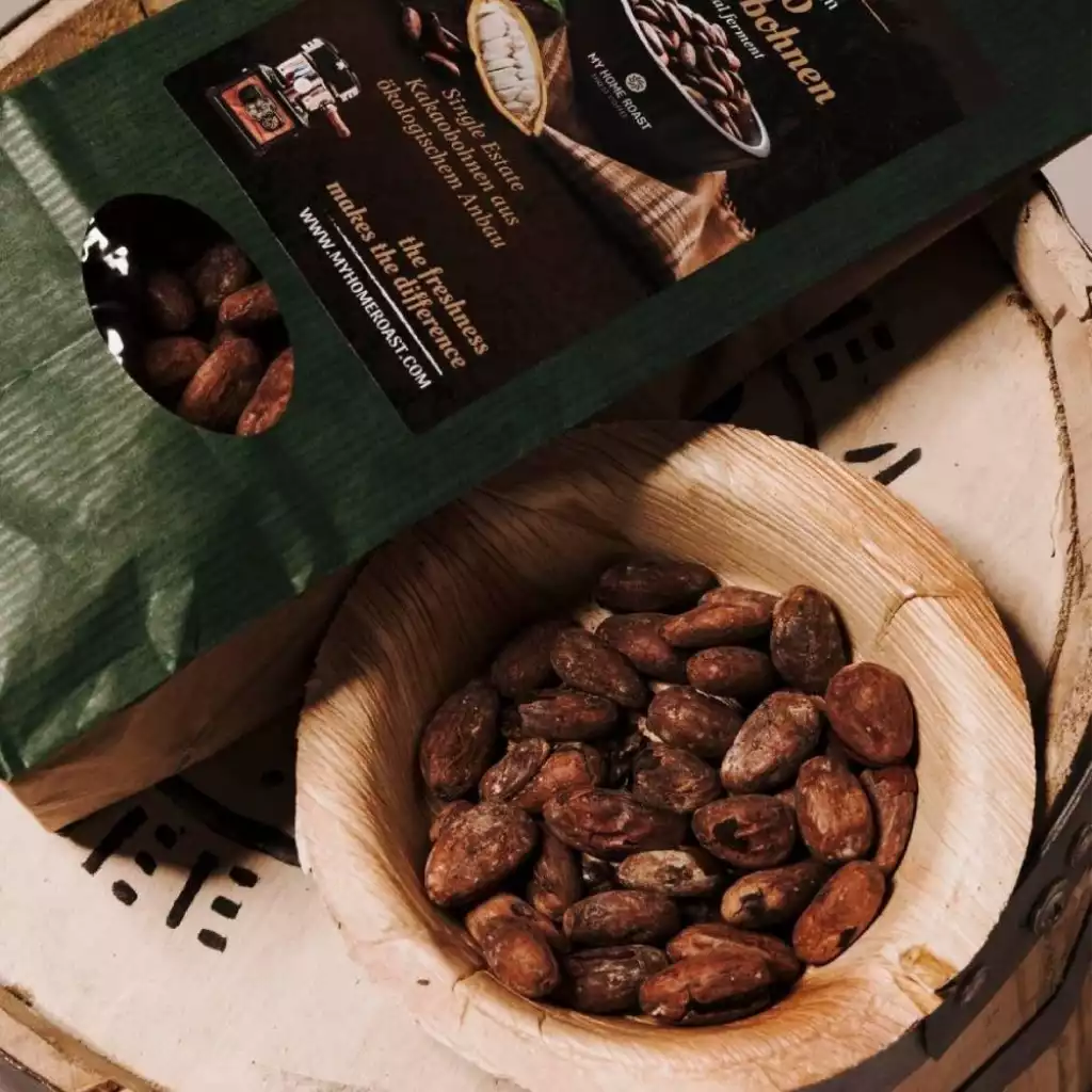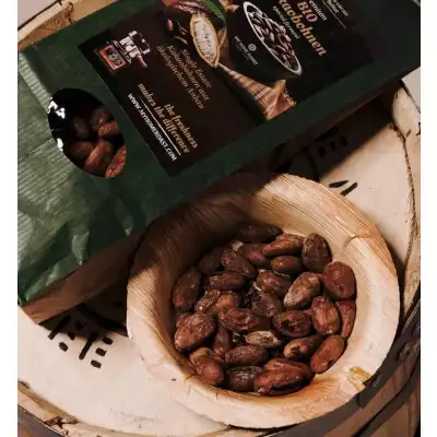 Kakao wird als eines der ganz besonderen Superfood Lebensmittel bezeichnet. Laut Alexander von Humboldt, hat die Natur kein zweites Mal, eine solche Fülle der wertvollsten Nährstoffe auf einem so kleinen Raum zusammengedrängt wie gerade bei der Kakaobohne. Unsere Bio Kakaobohnen sind eine Criolo-Kreuzung, sie wachsen inmitten wilder Waldgärten in Südbelize und sind charakteristisch für eine komplexe Aromenvielfalt sowie, schonend frisch geröstet, eine intensive Süße im Geschmack. Sie eignen sich hervorragend als Superfoodsnack, Zusatz für Müsli und Smoothies, zur Garnierung von Käseplatten und generell zur Verfeinerung beim Braten und Backen. Ein besonderer Genuss ist die Zubereitung heißer Kakaogetränke direkt aus frisch gerösteten ganzen Kakaobohnen.