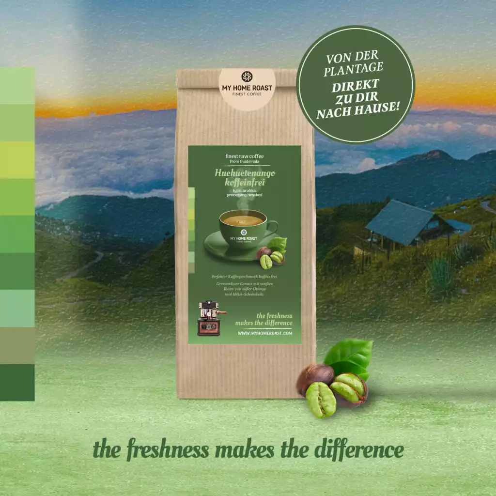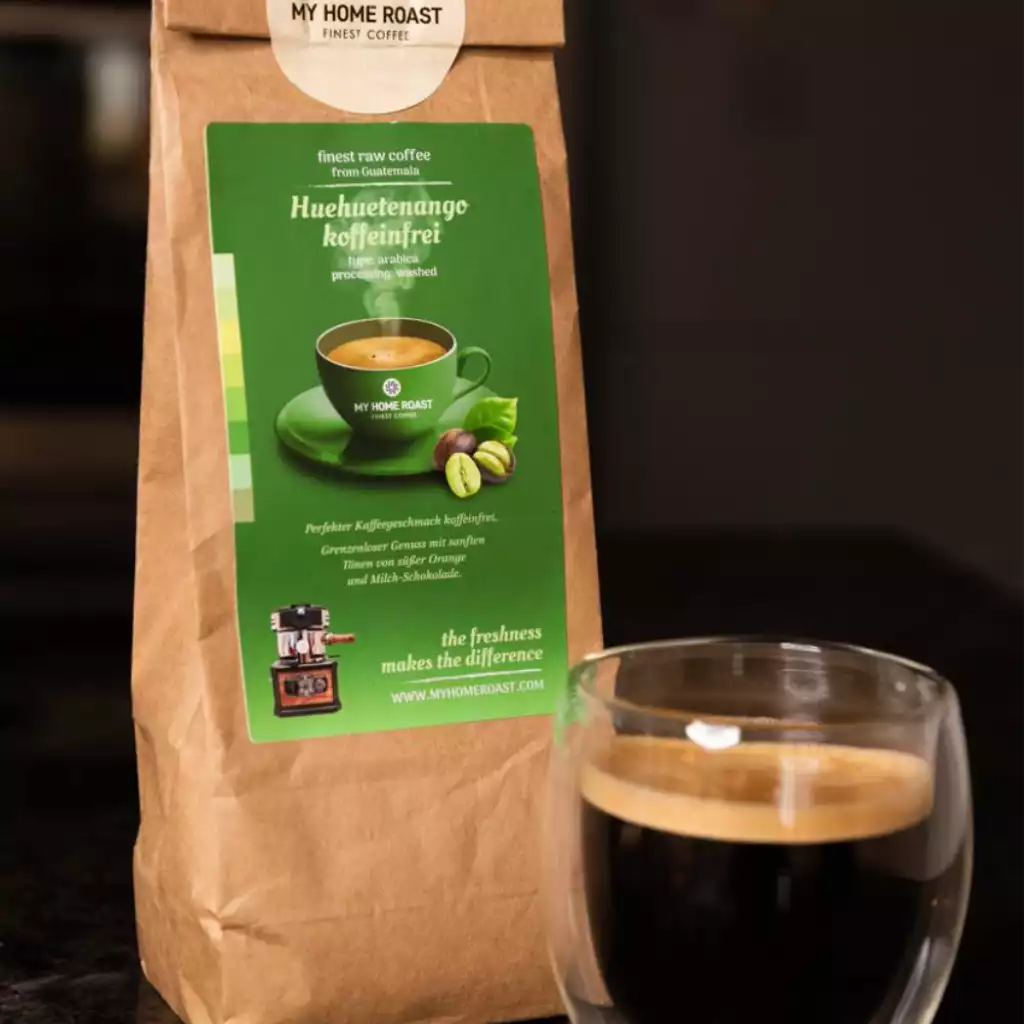 Das Ergebnis ist eine wahre Sensation mit Aromen von süßer Orange und Milch-Schokolade. 100% Röstfrische garantiert auch entkoffeiniert das volle, einzigartige Genuss-Erlebnis, und das auch bei Koffein-Empfindlichkeit. Der Huehuetenango koffeinfrei sollte schonend geröstet werden. Wir empfehlen bei Ihrem Röstvollautomaten einen hellen Röstgrad einzustellen. Beim Rösten werden Sie leichte Honig- Duftnoten beobachten. Erleben Sie koffeinfreien Kaffee, selbst auf Knopfdruck geröstet, unvorstellbar geschmackvoll wie sie ihn noch nie getrunken haben!