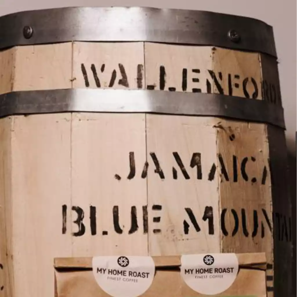 Unser Jamaica Blue Mountain Wallenford Estate ist die bekannteste und gefragteste Jamaica Blue Mountain Marke der Welt. Auf seiner Reise von Jamaica zu MyHomeRoast wird er ausschließlich in Holzfässern gelagert.